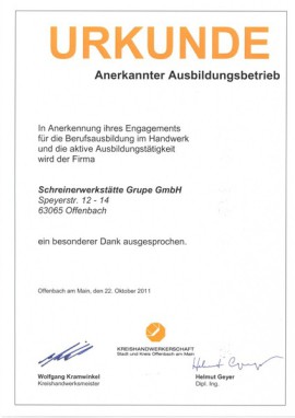 Ebenso engagieren wir uns seit langer Zeit kontinuierlich in der Ausbildung junger Menschen in unserem Handwerksberuf und bilden aus diesem Grund permanent im Gewerk Tischler aus.